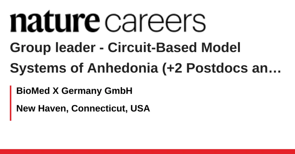 Group leader – Circuit-Based Model Systems of Anhedonia (+2 Postdocs and 2 Research Assistants)