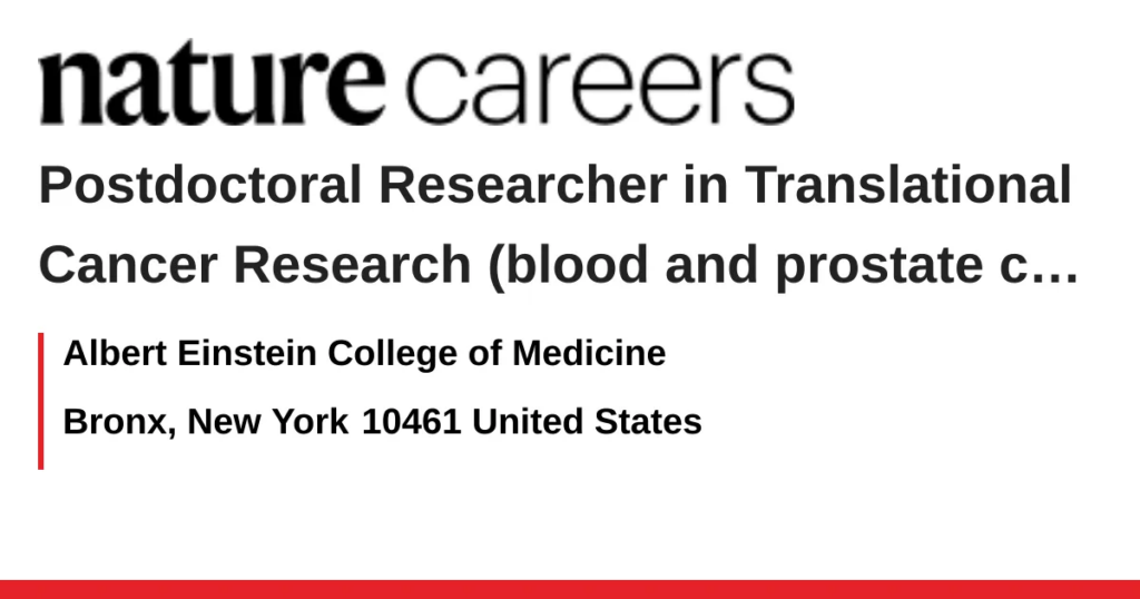 Candidates should hold a Ph.D. or M.D./Ph.D. in molecular biology, hematology, immunology, prostate biology or a related field. Experience with mouse models, stem cell assays, single-cell or omics data, or cancer biology is preferred. Strong communication and teamwork skills are essential.