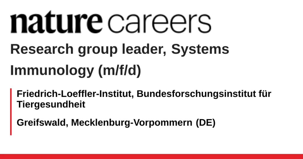 We look forward to receiving your application. Please send your complete application (including publication record and references) as a PDF file by 5 April 2026 to the e-mail [email protected] with the subject “Position 009/26”. Alternatively, you can send your application by post to the Friedrich-Loeffler-Institut, Referat Personal, Postfach 1318 in 17466 Greifswald – Insel Riems. Please note that incomplete documents may lead to exclusion from the application procedure.