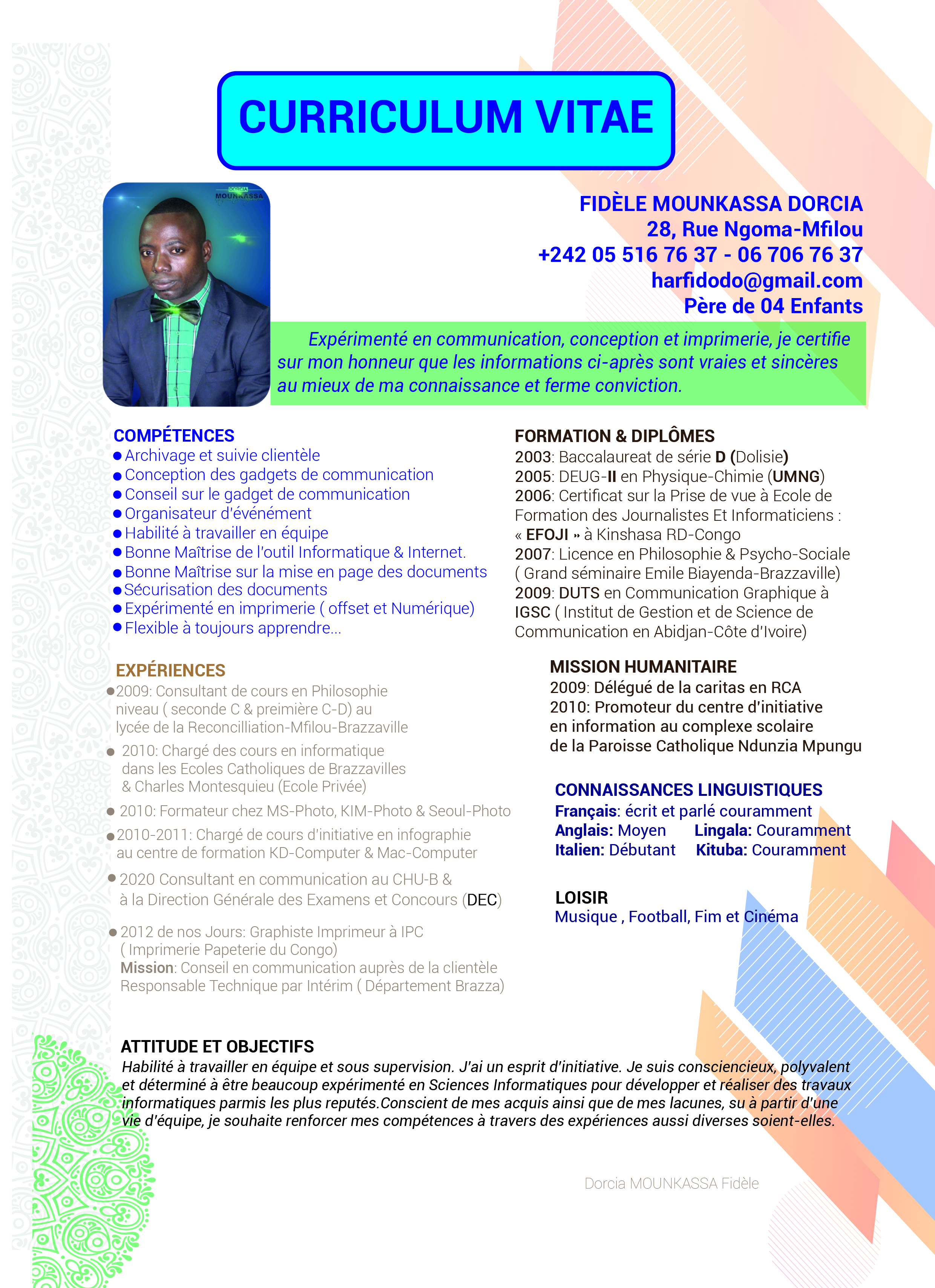 Dorcia ********* ****** Dorcia-MOUNKASSA-F..jpg Communication et Conception Congo Brazzaville Situation matrimoniale Parcours d’études Parcours Professionnel Connaissance linguistique Updated 4 years ago